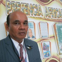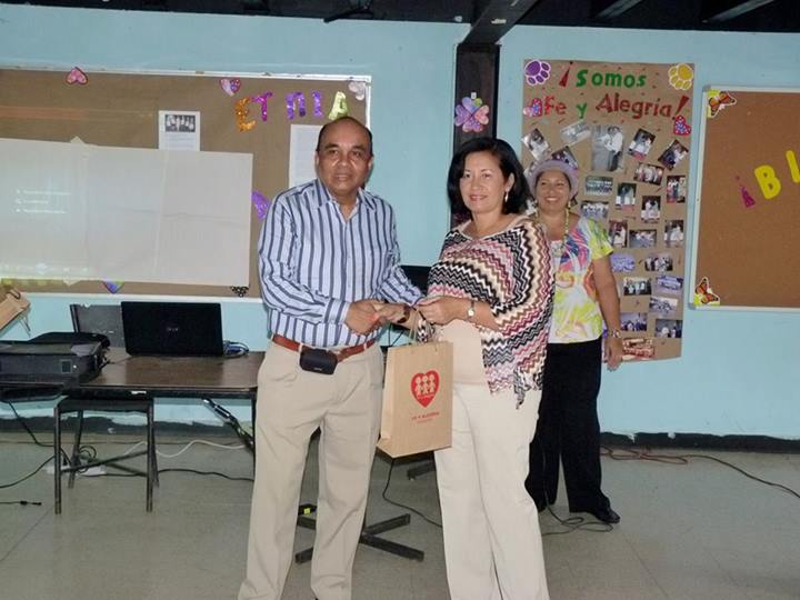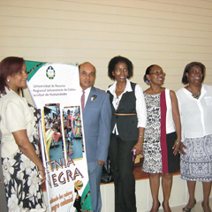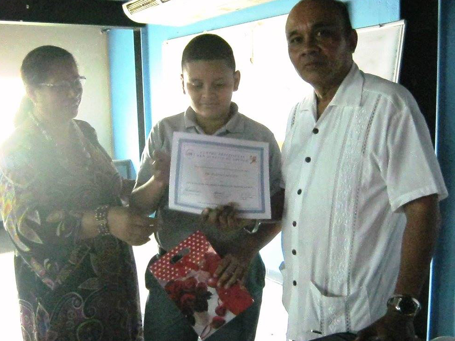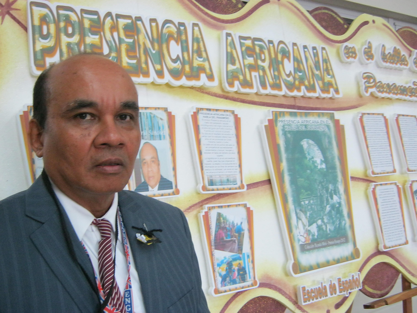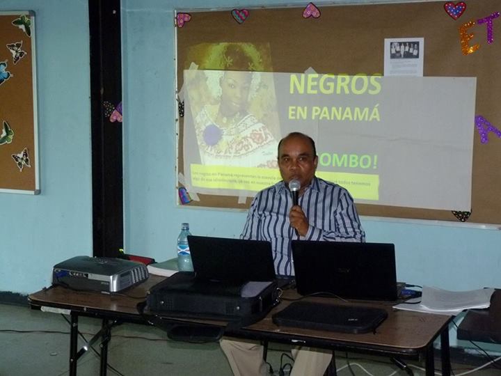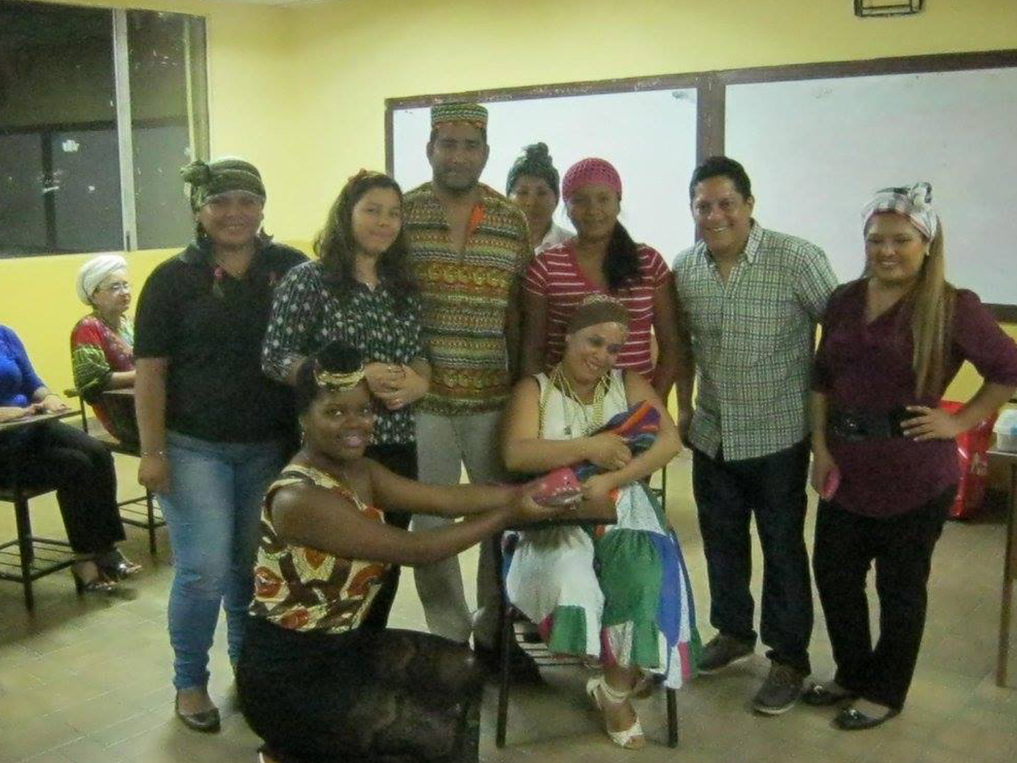 El profesor recibe certificado de participación en el conversatorio de la etnia negra.
