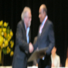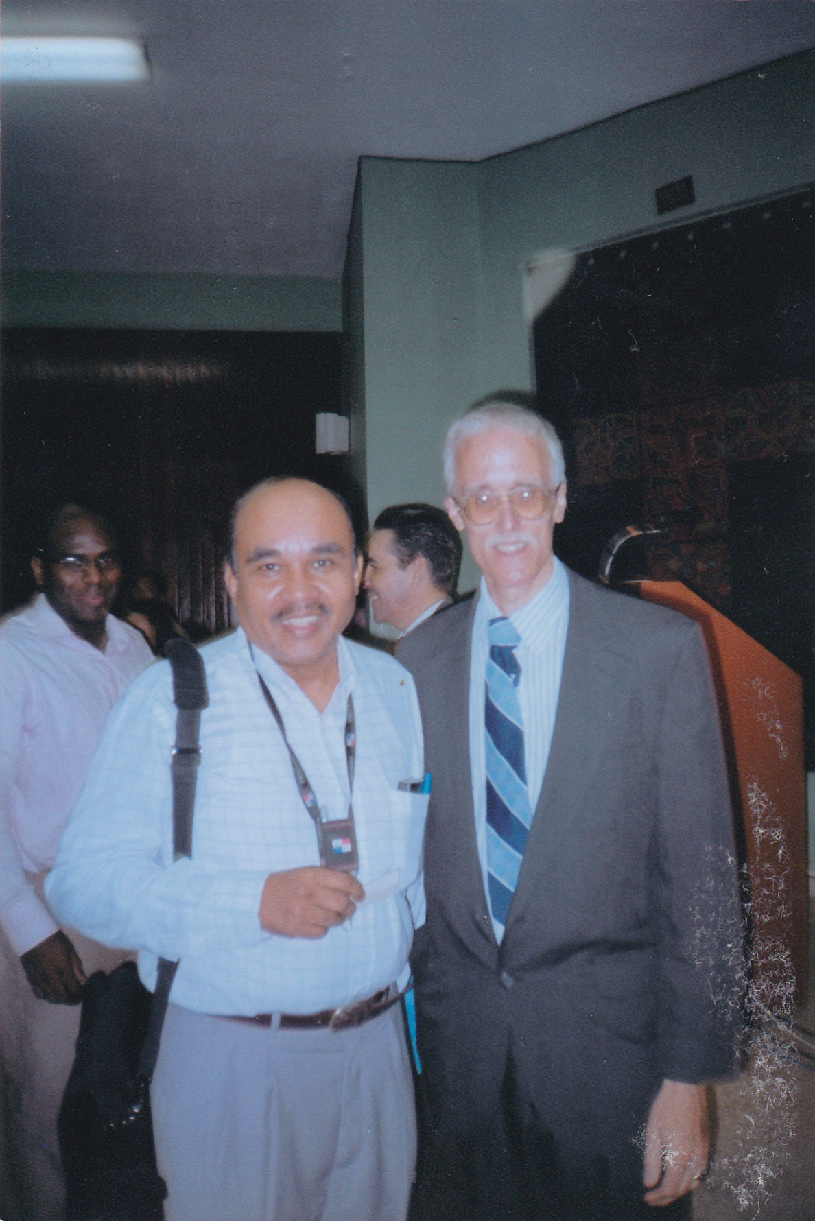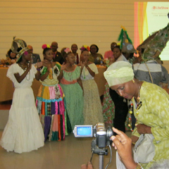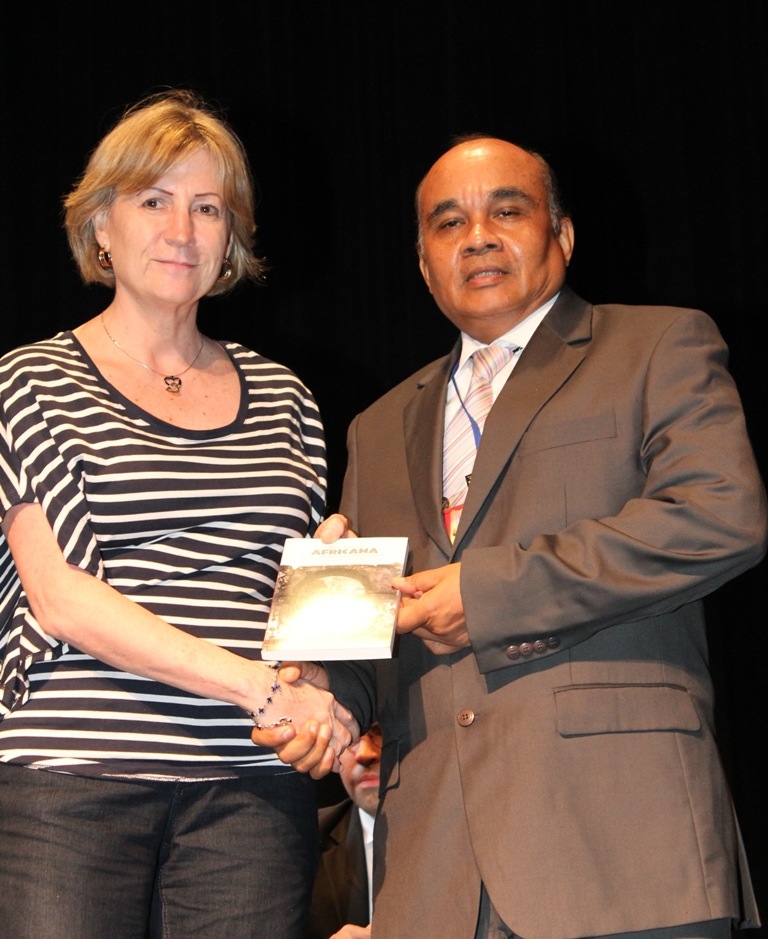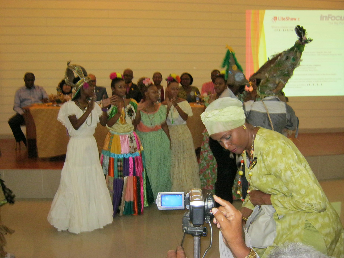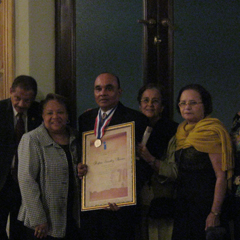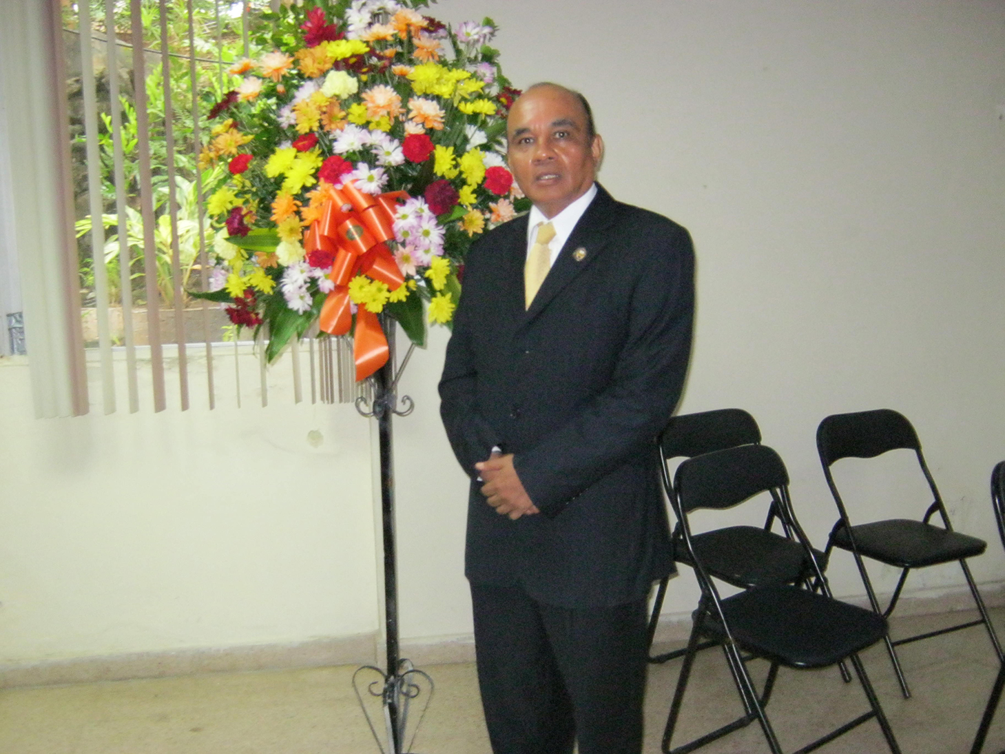 El profesor recibe certificado de participación en el conversatorio de la etnia negra.