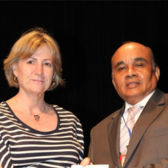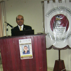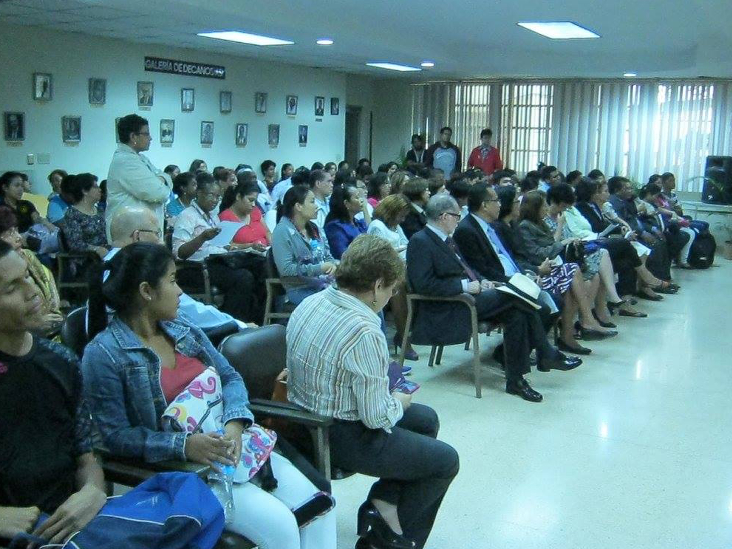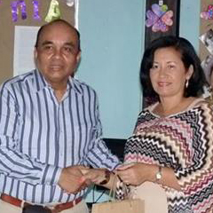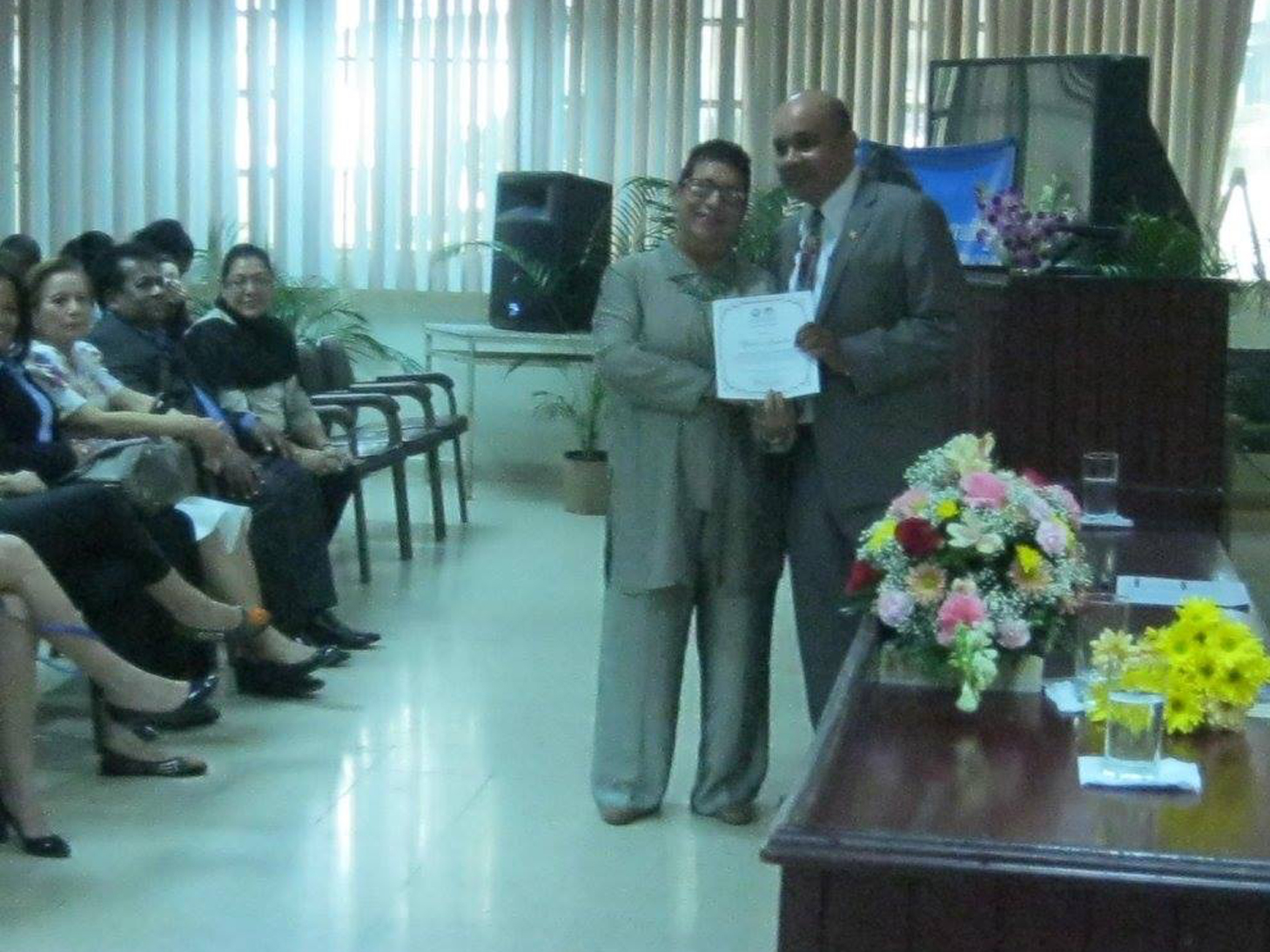 La magíster Nimia Herrera entrega certificado de participación al prof. Sánchez.