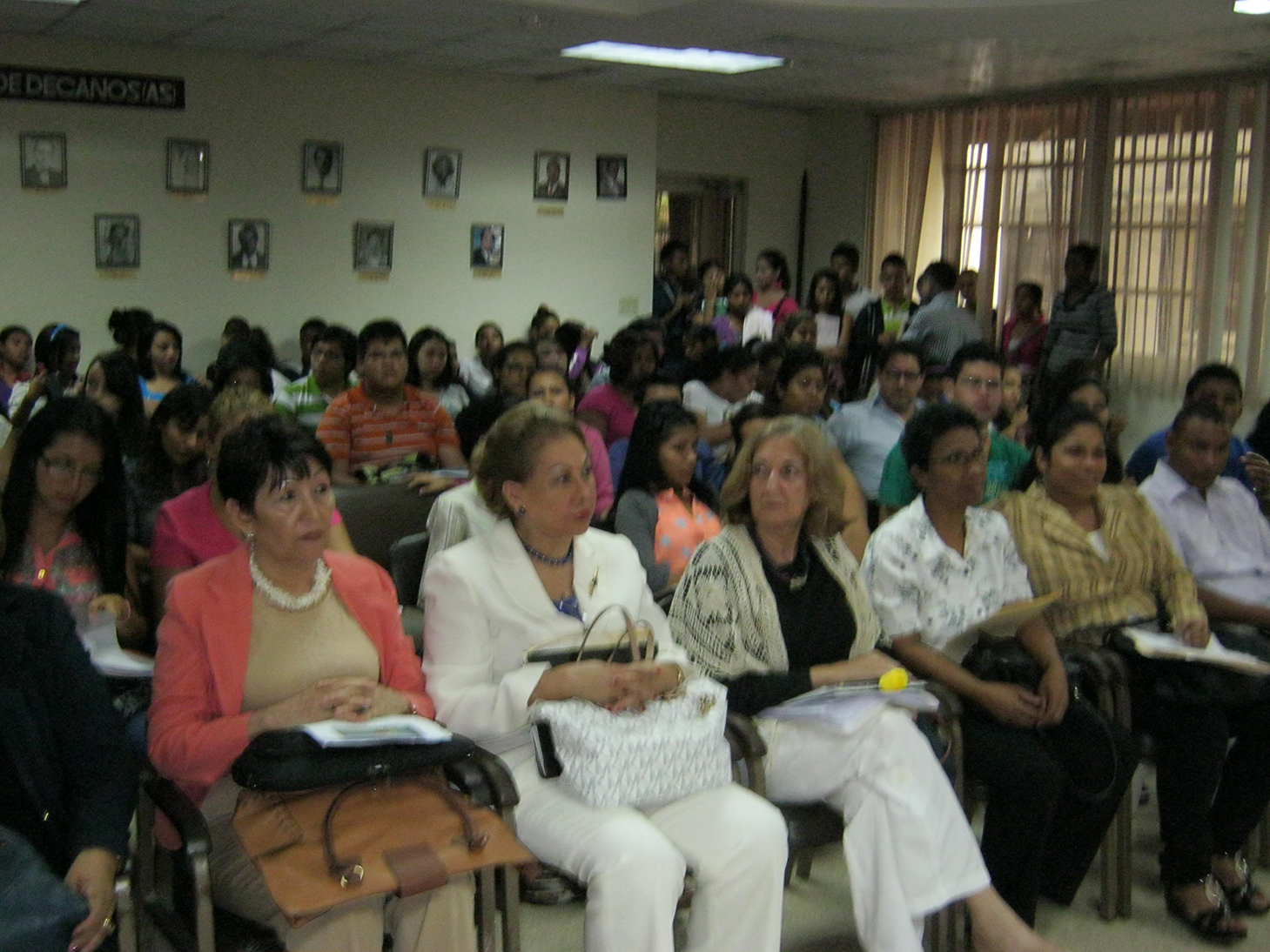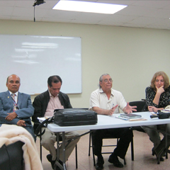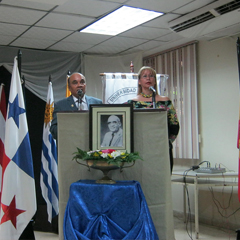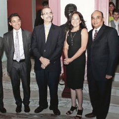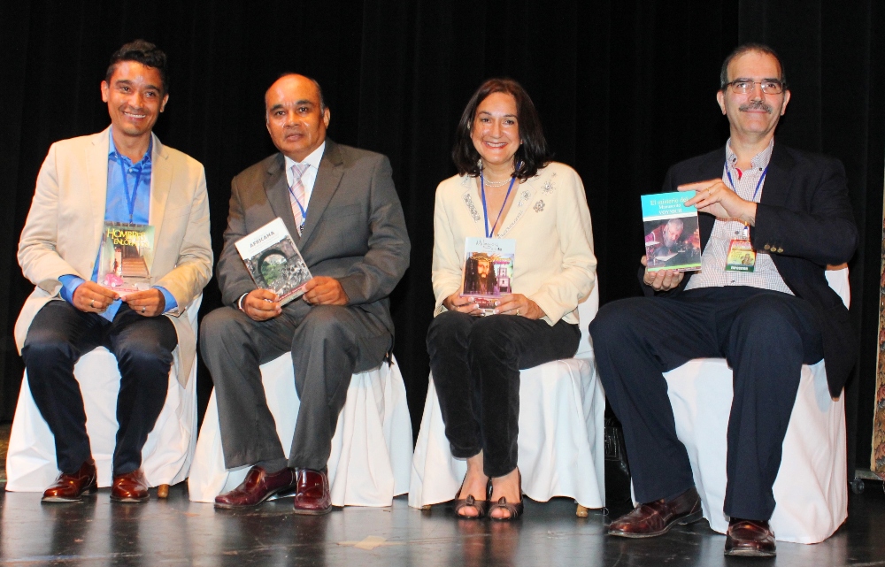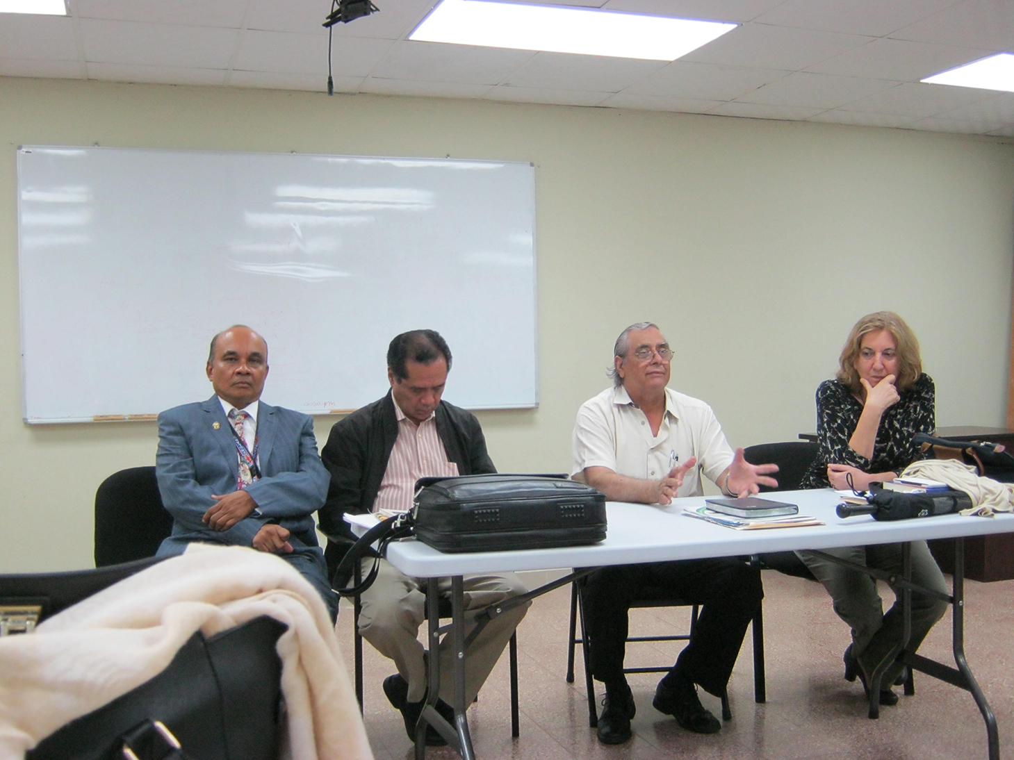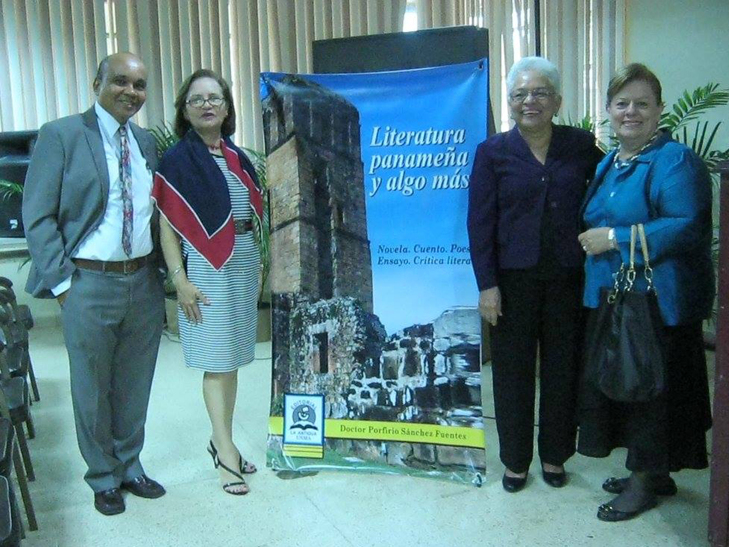 El dr. Porfirio Sánchez, la dr. Maida Díaz, la dr. Norma Olmos, la magíster Margarita Vásquez, Directora de la Academia de la lengua. — con Margarita Vásquez.