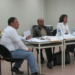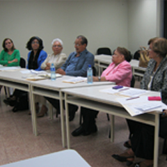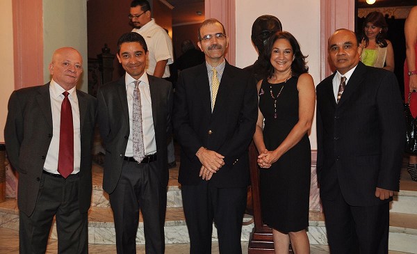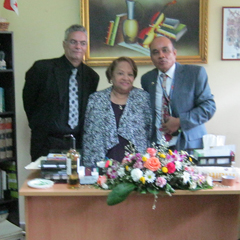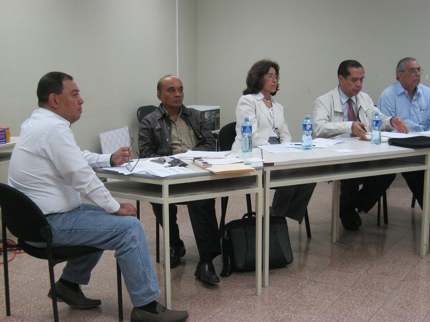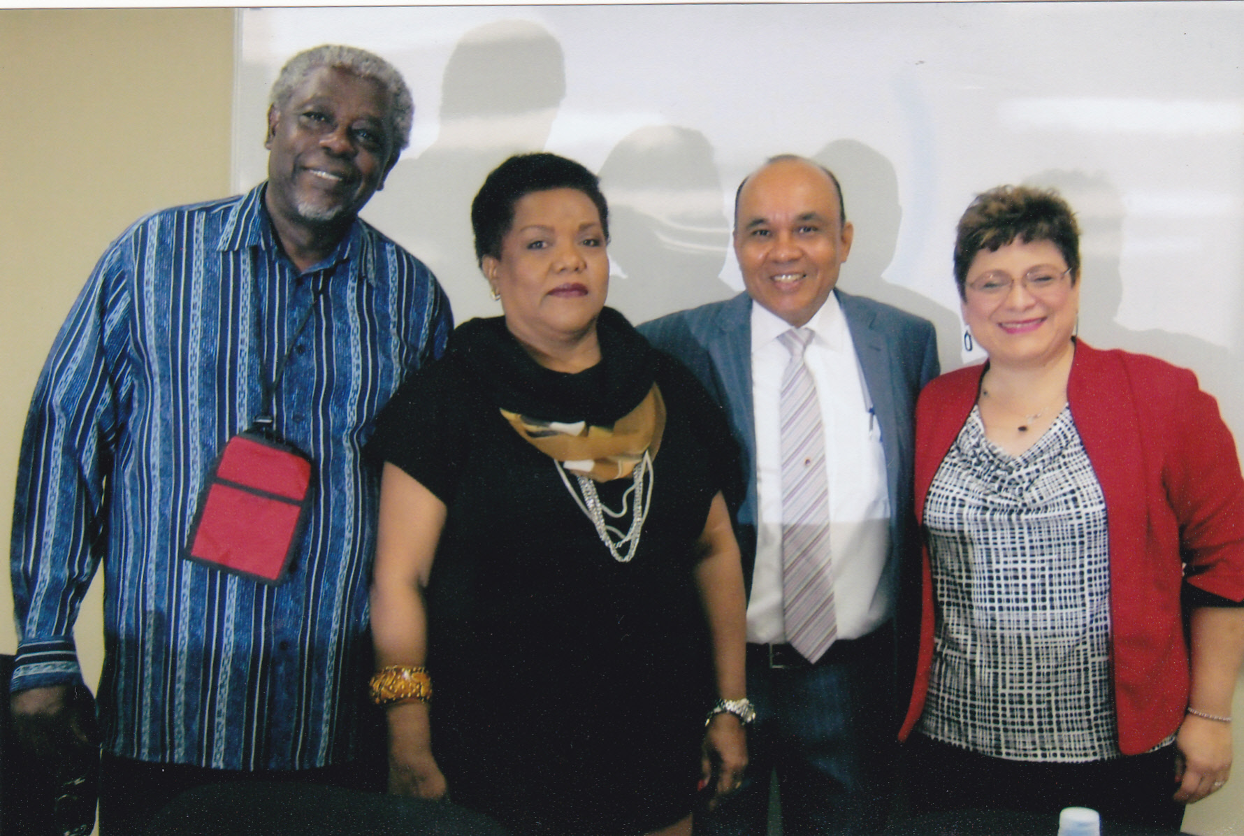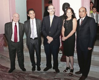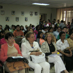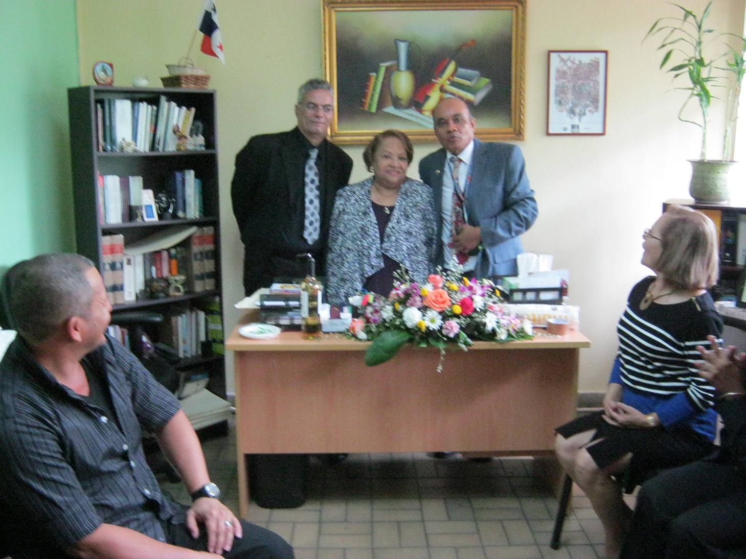 El dr. Porfirio Sánchez, la dr. Maida Díaz, la dr. Norma Olmos, la magíster Margarita Vásquez, Directora de la Academia de la lengua. — con Margarita Vásquez.